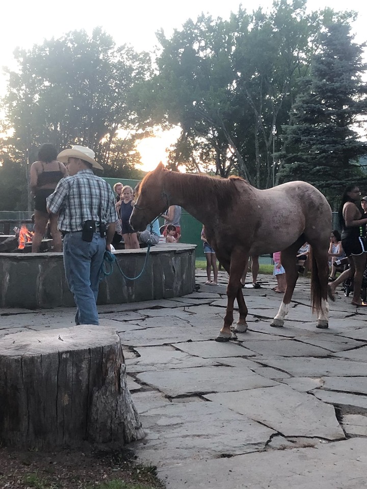 Together, we learned from one another, helped so many people with their horsemanship, competed (and won) in a variety of events such as trail trials, obstacle challenges, equestrian games of all kinds and more. We have pushed cattle, enjoyed cutting/sorting, tossed a rope, taught clinics all over the US, presented at Expos and spent hours (and miles) on the trail, ensuring that novices stayed safe. He entertained at “cowboy campfires”, represented the Quarter Horse breed at State Fairs and Expos. Ronan greeted incoming guests at a dude ranch resort and even helped with holiday celebrations IN the hotel lobby! He worked at a therapeutic horsemanship center helping veterans, first responders, PDSD patients, special needs individuals (both adult and children) and helped to heal the hearts and minds of many. He was the star of the Lucky Star Horsemanship program, helping to train and guide other horses and their humans to reach higher levels of performance and confidence. He starred in numerous videos! He gave so many lessons – from children like my niece at a young age to adults who wanted to “get back on a horse” but didn’t have an over-abundance of confidence – and represented the western horse in ways that words fail to fully describe. He made his rider feel safe, treated them like precious cargo. These are just a few of the MANY aspects, and cherished memories, of our journey together. He had a heart, spirit and a work ethic that was so very special. He became the bridge for so many people into the Art of Horsemanship. He was a guide, a teacher and even saved me from cougar, bear and rattle snake. He touched hearts, brought joy, shared courage, and elevated the awareness of true connection and communication to levels many had never experienced.
